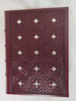 Einband: Erlesenes rotes Leder mit Lederkapitalband. Der Faksimile-Band trägt auf der Vorderseite das Wappen des Erzbischofs von Canterbury in 925/1000 Sterlingsilber und hat 4