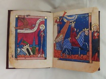 Dieses prachtvolle, mit 52 ganzseitigen Miniaturen verzierte Apokalypsen – Manuskript, erschien Ende des 13. Jahrhunderts / Anfang des 14. Jahrhunderts. Der in Metz entstandene Codex zeigt Einflüsse Italienischer und Englischer Kunst.