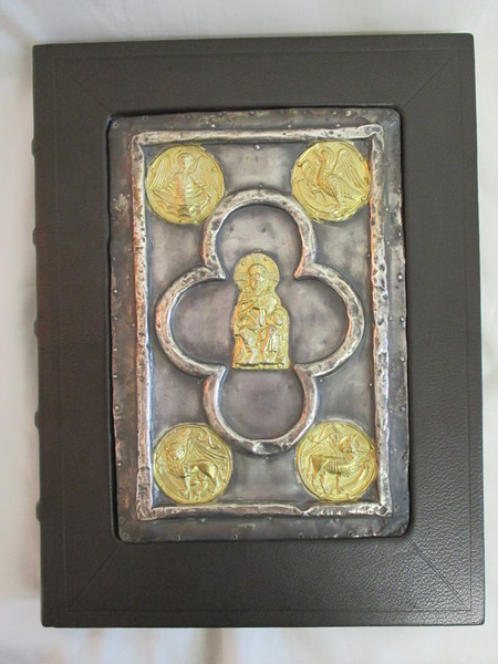 jeweiligen Evangelisten darstellten. Die Bilder sind mit 23-karätigem Gold versehen. Die Texte wurden mit 85 prachtvollen Initialen verziert. Alle Seiten sind randbeschnitten.