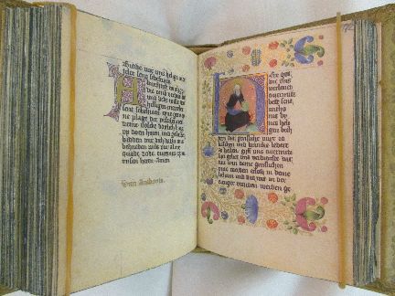Miniaturen: 9 ganzseitige Miniaturen nach Altarbildern, zahlreiche Pflanzen- und Tierdarstellungen.