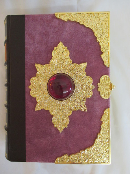 Ein Buch, ganz in Gold auf Purpurgrund geschrieben