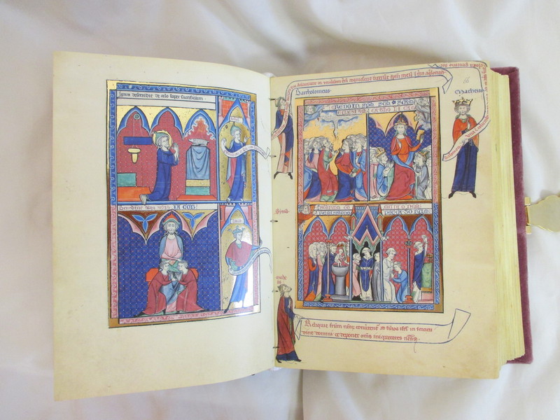 ungewöhnlichen Bilderreichtum. Auf seinen 104 Seiten finden sich 132 Bildszenen zum Leben Christi und der Jungfrau Maria, zu den Aposteln und zu verschiedenen Heiligen. Mit einer genialen