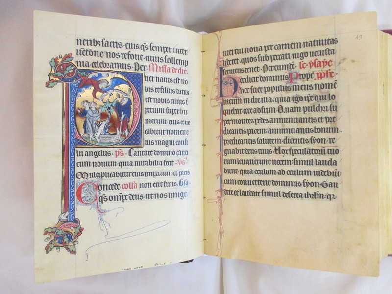 Miniaturen: 12 ganzseitige Miniaturen und 25 Bordüren mit prächtig vergoldeten Blumenmotiven sowie 112 mit Gold durchzogenen Initialen.