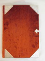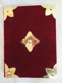 Einband: Roter Samteinband mit Beschlägen