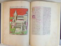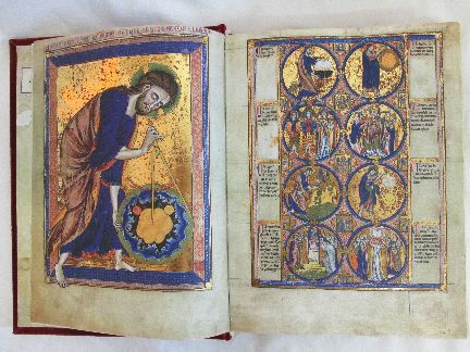 Die 131 Bildseiten sind geschmückt mit 1032 vergoldeten Miniaturen und einem ganzseitigen Vollbild, das mit der Darstellung Gottes als Architekt des Universums große Berühmtheit erlangt hat.