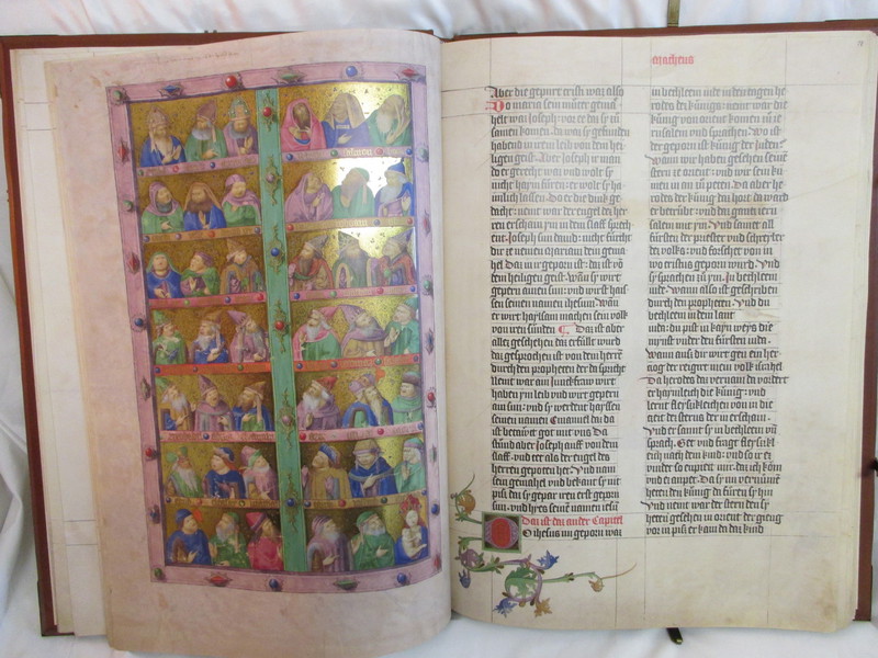 Die einzigartige Wirkung dieser Bilderhandschrift geht von den vergoldeten, farbigen Bildmedaillons aus, in denen Szenen aus Büchern des Alten Testamentes dargestellt sind. Der Inhalt dieser Szenen ist schon allein durch diese Illustrationen lesbar; der begleitende Text fasst die jeweilige Passage zusammen oder paraphrasiert sie. Die Miniaturen überzeugen durch die Durchschlagskraft der Erzählung, ihre Eindeutigkeit und auch Drastik.