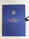 Einband: heller Ledereinband mit Schmuckkassette