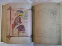 Miniaturen: 4 Evangelistenbilder, 16 Kanontafeln, 5 Teppichseiten, zahlreiche Initialzierseiten.