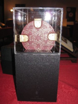 mit einer Wirbelrosette in Echtgold besetzt.