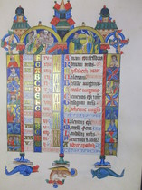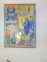 Diese Prachthandschrift umfasst auf 9 Seiten einen vollständigen Kalender mit reichem Architekturschmuck und Tierkreiszeichen sowie 5 Darstellungen zum Leben Christi auf 2 Bildseiten.