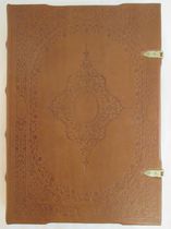 Einband: Dunkelrotes Ziegenleger mit kunstvoller Blindprägung und Schließen. Der Vorderdeckel ist mit 12 Elfenbeintäfelchen versehen,