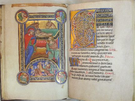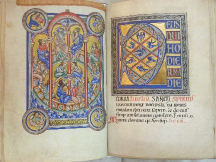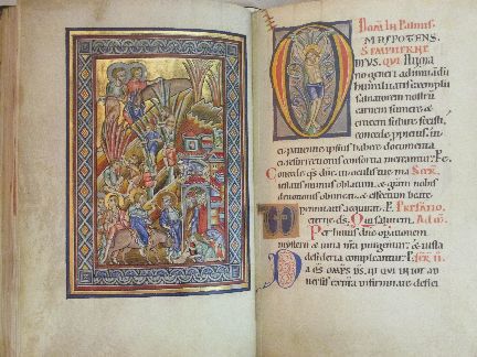 14 Ganzseitige Miniaturen, 21 Seiten mit Ornamentik, 343 bis zu 15 cm hohe Initialen in Gold und Silber.