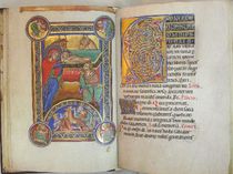 Miniaturen: 28 Historienbilder, 88 ornamentale, teils ganzseitige sowie einige figurale Initialen und 12 Kalendertafeln
