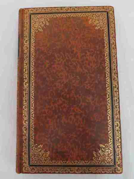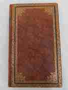Einband: Rotes Ziegenleder mit Blindprägung, Messingbeschlägen und Messing schließen
