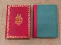 Einband: Rotes Leder mit Zierprägung und einem Wappen, Goldschnitt, in Acrylglas-Vitrine