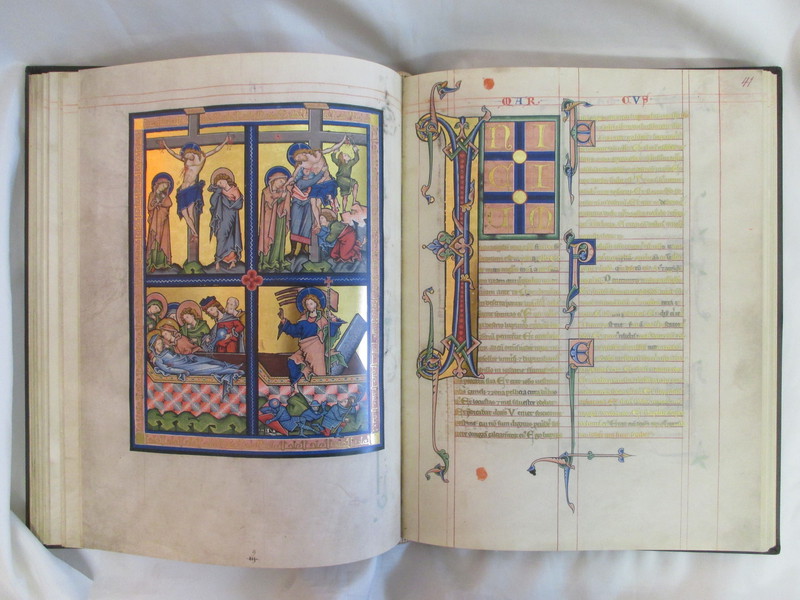 Miniaturen: 13 ganz- und 43 halbseitige Miniaturen, 12 Kanontafeln, 44 prunkvollen Zierseiten,