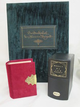 Einband: Samteinband in edlem dunklen Orange mit gravierten Silberbeschlägen und Silberschließe, in Luxuskassette