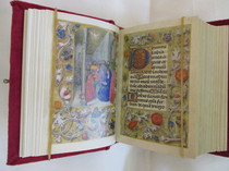 Das persönliche Gebetbuch des burgundischen Herzogs Karl der Kühne, erkennbar an drei Porträts des Auftraggebers, ist auf jeder Seite reich verziert und mit Gold ausgestattet. Der Codex spiegelt so den Luxus Burgunds wider und nimmt eine Schlüsselstellung in der Geschichte der flämischen Buchmalkunst ein.